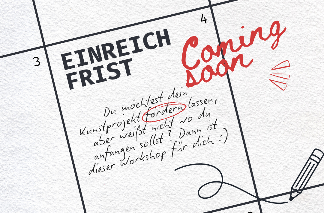 Du möchtest dein Kunstprojekt umsetzen, aber dir fehlen die finanziellen Mittel? Im Workshop mit Jonas Scheiner bekommst du wertvolle Tipps und Tricks rund um das Thema Förderungen, Förderanträge und Anstöße wie man das eigene Vorhaben kalkuliert und in Worte fasst. Was ist Fördergeber*innen wichtig? Worauf solltest du achten? Welche unterschiedlichen Arten von Förderanträgen gibt es? Das und viel mehr gibt es am 4.12. & 5.12. kostenlos in der Jugendinfo. Der Workshop ist auf beide Tage aufbauend, um Anmeldung wird gebeten.
